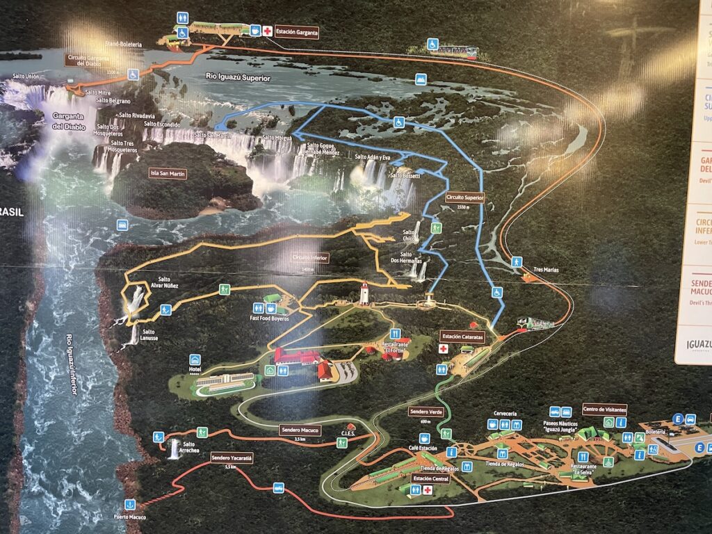 アルゼンチン側の入り口はブラジル側よりもさらに整っている感じです。中に入ると地図がありますので、まずは地図を見ましょう。