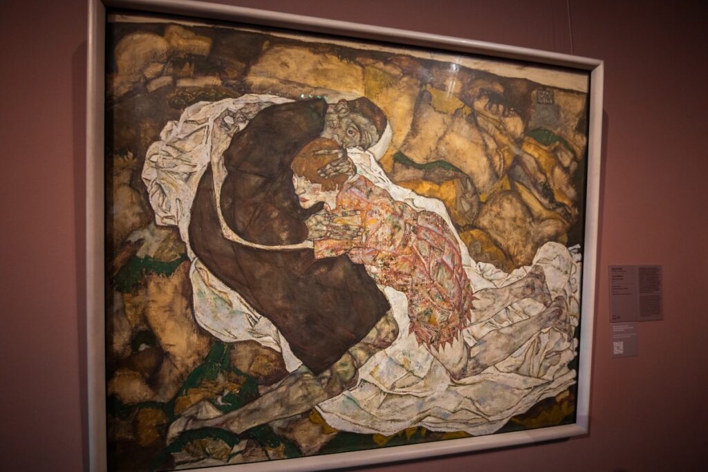 こちら、エゴン・シーレの「死と乙女」(1915)という作品だそうです。初めて知った画家ですが、一番印象に残ったので紹介です。そして、気になったので何気なくオーディオガイドで解説を聞いたんですが、クリムトの接吻と構図が同じであり、影響を受けている作品ということでした。これ聞いた時、なんかゾクッとしました。