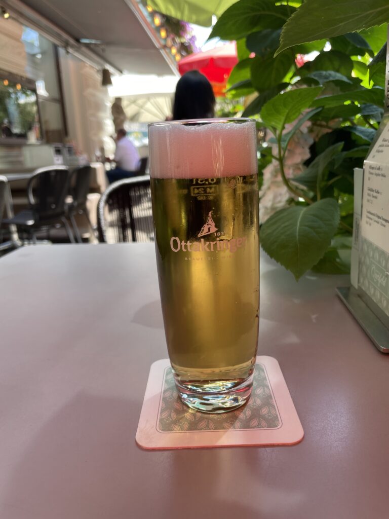コーヒー飲もうと思ったんですが、ビールとほぼ金額変わらず、一杯1000円近かったのでそれならビールかということでビールにしました。ウィーンは物価高いんですが、ここのカフェはその中でもより高い設定でした。値段も一流です。