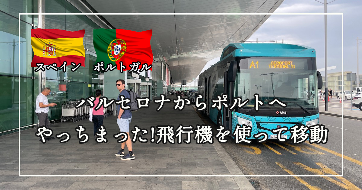 移動は飛行機です。今回はOmioというアプリを使いチケットを手配しました。バルセロナからポルトまでは荷物の加算料金含めて16,300円ほどでした。預け入れ荷物が必要ない方はもっと安く済むと思います。なお、バスでいどうとなるともっと高くつくと思われます。フライト時間は2時間ほど、バスだと12~14時間くらいはかかってしまうかと思います。