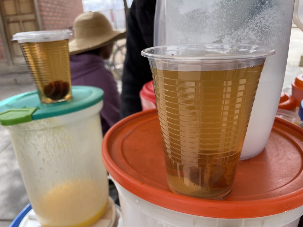 乾燥したモモを再度煮出して作るデザートジュースらしい。エマはソーダと言っていたけど、炭酸は入っていなくて甘いジュースでした。これが不思議な味で、シナモンとかグローブみたいなスパイスっぽい香りがします。最初、うん!?って思ったけど、飲んでいるうちに割と美味しいとなりました。そして、中に入っている桃も食べれるよって言われたので食べてみたのですが、これは食べてびっくり、まさに干し柿!! いや!ほんとですよ!! ほんとに干し柿なので、疑った方はぜひ飲んでみて下さい(笑