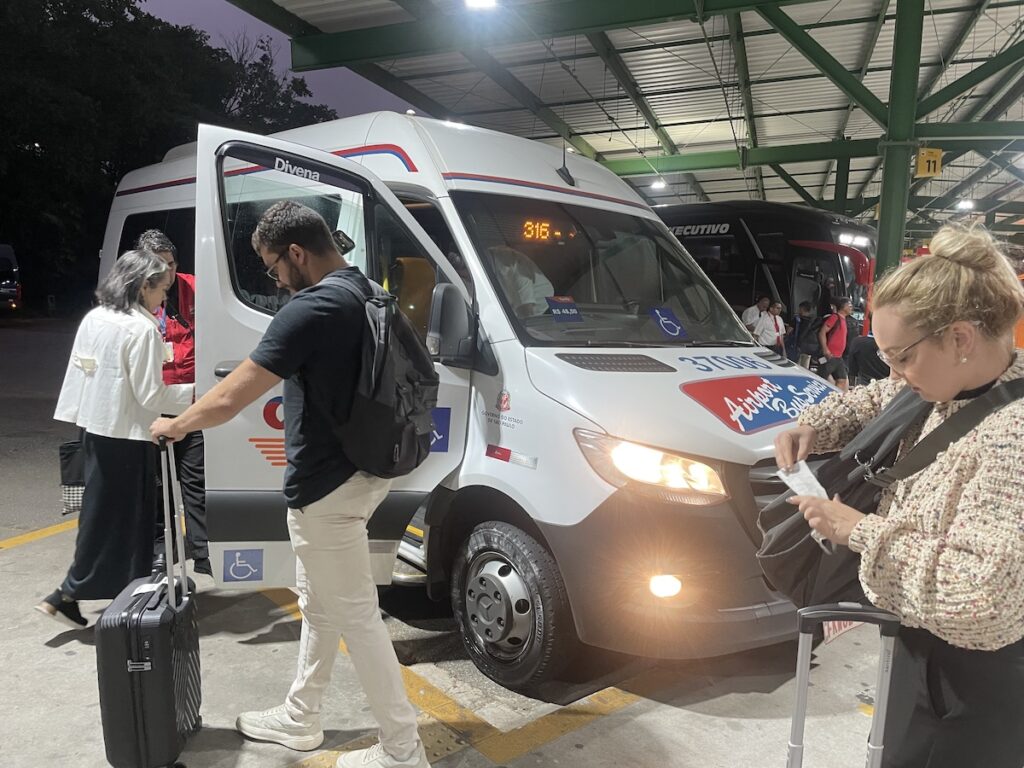 どうやら、このミニバンはリベルダーデまでは行かないよということらしい。なので、到着したらUberでホテルまで行く必要がありそうでした。チケットを売ってくれたおじちゃんが運転手に伝えてくれて、運転手が到着した時に止まっていたタクシーに伝えてくれて、リレー方式でホテルまで行くことができました! みんな優しい