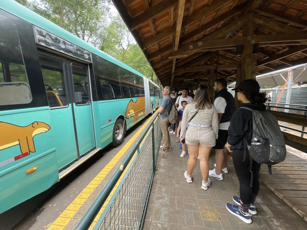 30分ほどでイグアスの滝の入り口に到着です。エントランスの場所は地図上だと滝よりだいぶ前なのでお気をつけください(入園したら再度バスに乗ります)。