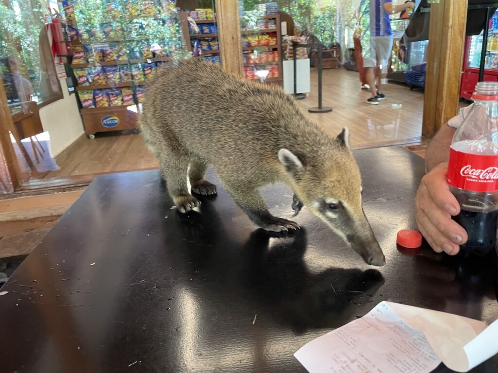 途中こんな可愛らしいやつが出たりします。私はブラジル側では遠くの方にいるのを見かけたのですがすぐに草むらに逃げてしまい写真は撮れませんでした。なので、こちらの写真は次の日アルゼンチン側に行った時に撮った写真です。はっきり言ってめちゃくちゃかわいい。しかし、食べ物などを持っていると奪ったり時に引っ掻いたりして大怪我するらしいので気をつけてください。名前はコアティ(ハナグマ)です。