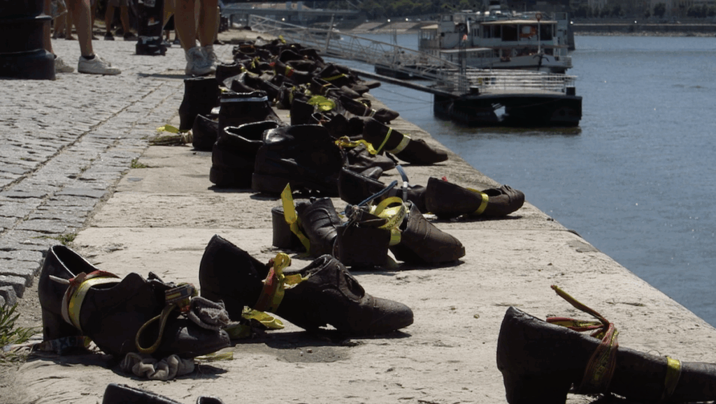 このモニュメントには男性の靴だけではなく女性の靴や、子供の靴もあります。つま先を川に向けて靴だけが残るこのモニュメントは独特な生々しさがあり訪れた人に強く訴えかけてきます。