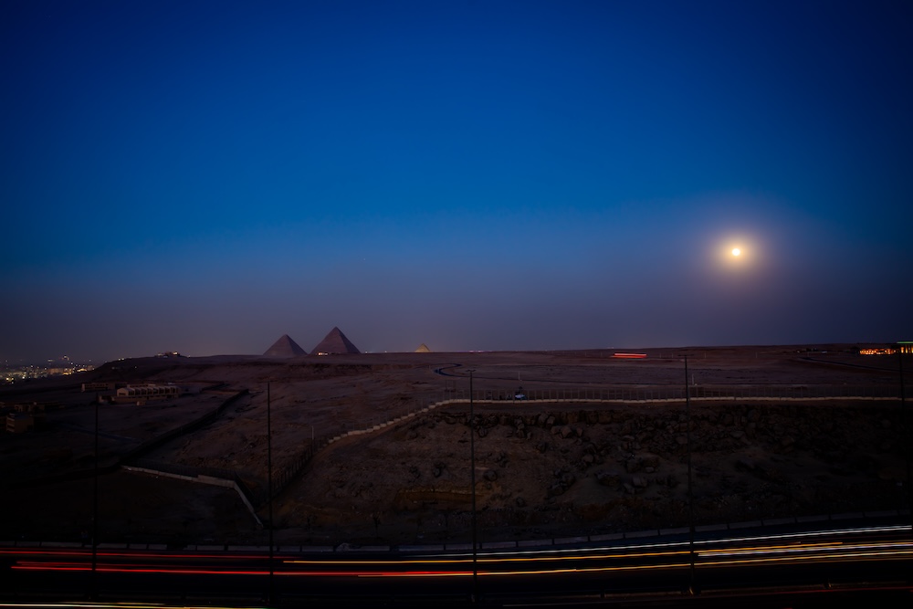 そして、目の前にピラミッド!! 最高のロケーションです。月明かりに照らされるピラミッドがなんとも幻想的。ビールを飲みながら月明かりに照らされるピラミッドを見るなんてなんて贅沢なんだろうか。