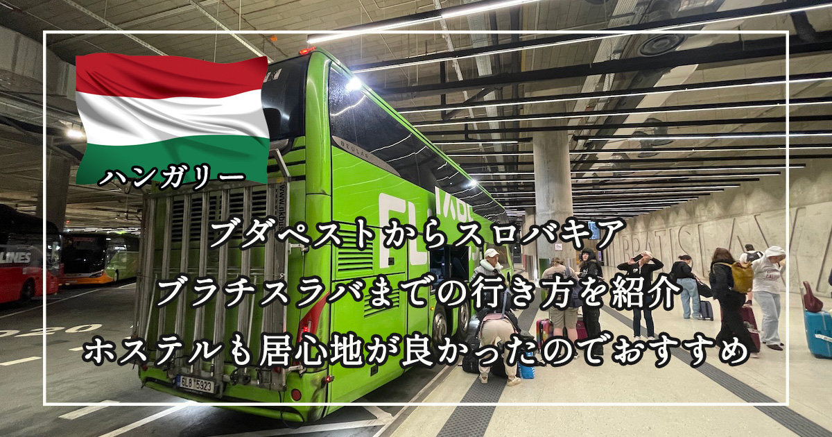 こんにちは、けんたびのけんたです。ヨーロッパはテンポ良く移動します。ハンガリーのブダペストからスロバキアのブラチスラバまでバスでの行き方を紹介します。移動の様子とノマドワーカーにもおすすめできる泊まったホステルを紹介します。