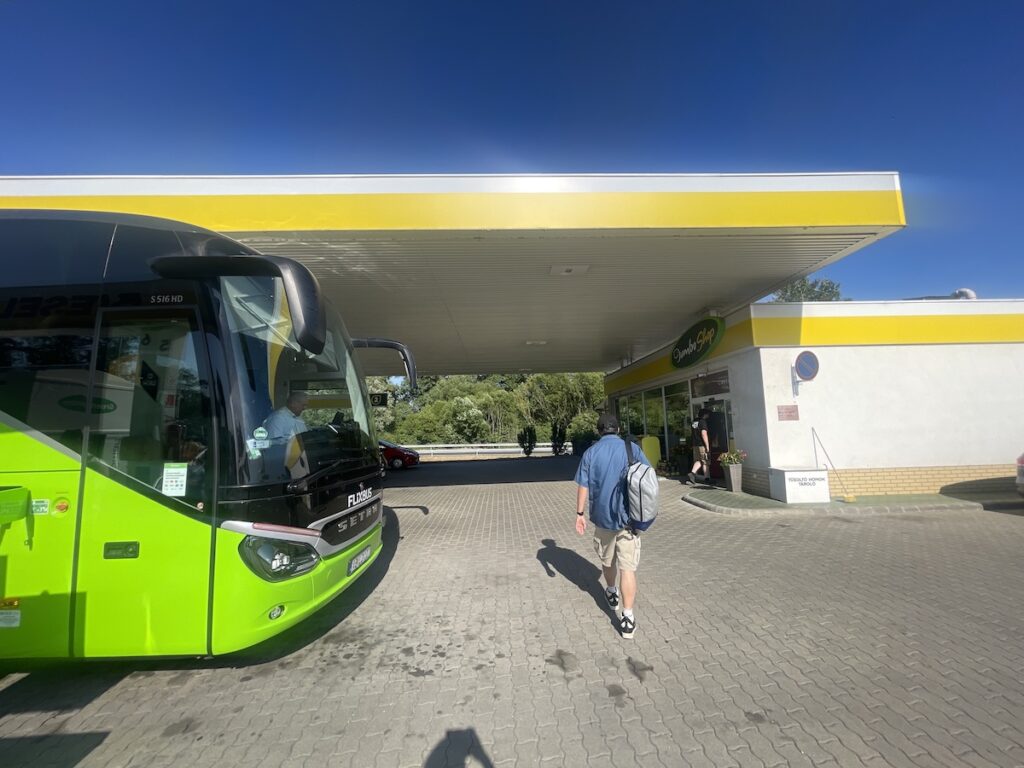 2回目の休憩でちょっと小腹が空いたので、ポテトチップスを購入したのですが、通貨がフォントに切り替わっていてびっくり。気づいたら国境を超えていたようです。クレジットカードで支払いしました。