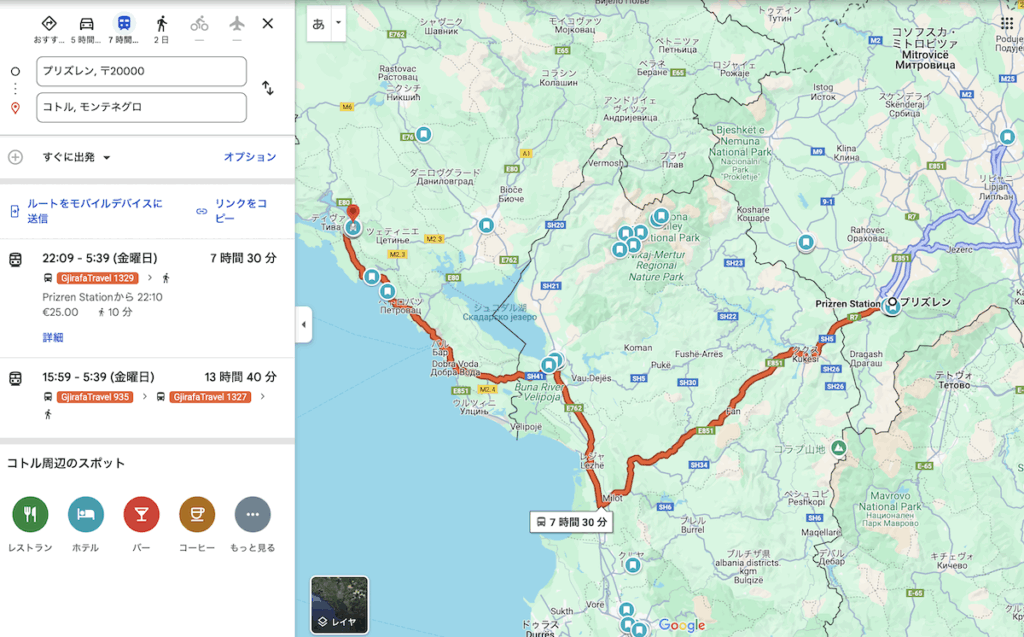 ありがたいことにプリズレンからコトルまでは直行便の寝台バスが出ています。1日1本だけのようなので、プリズレンから行くにはこのバスを使うことになるようです。余談ですが、ちょっと前までは直通便はなく乗り換えが必要だったようです。