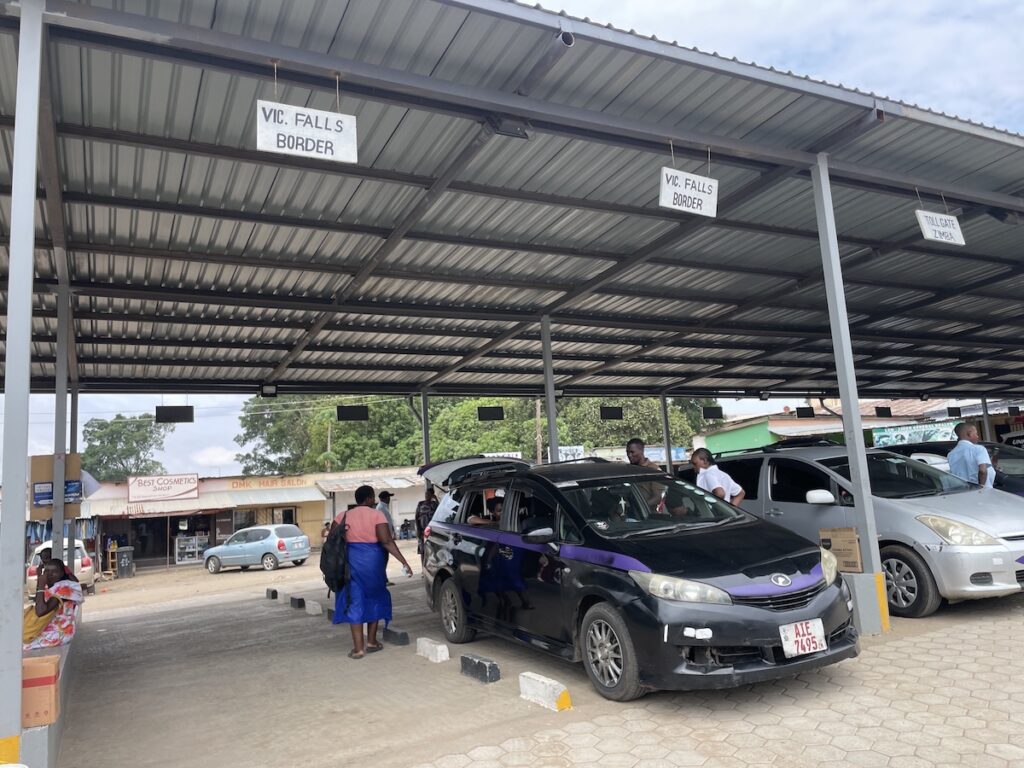 乗り場に着くと上に「VIC.FALLS/BORDER」という表記があるので、そこに行けばOK。5人くらい集まると出発です。料金は20zmw(≒138円/1クワチャ≒6.9円@11/’25)。全くぼったくられる気配もなく案内されました。支払いは到着時に運転手にお渡しします。小さい紙幣を持っていくのが吉です。