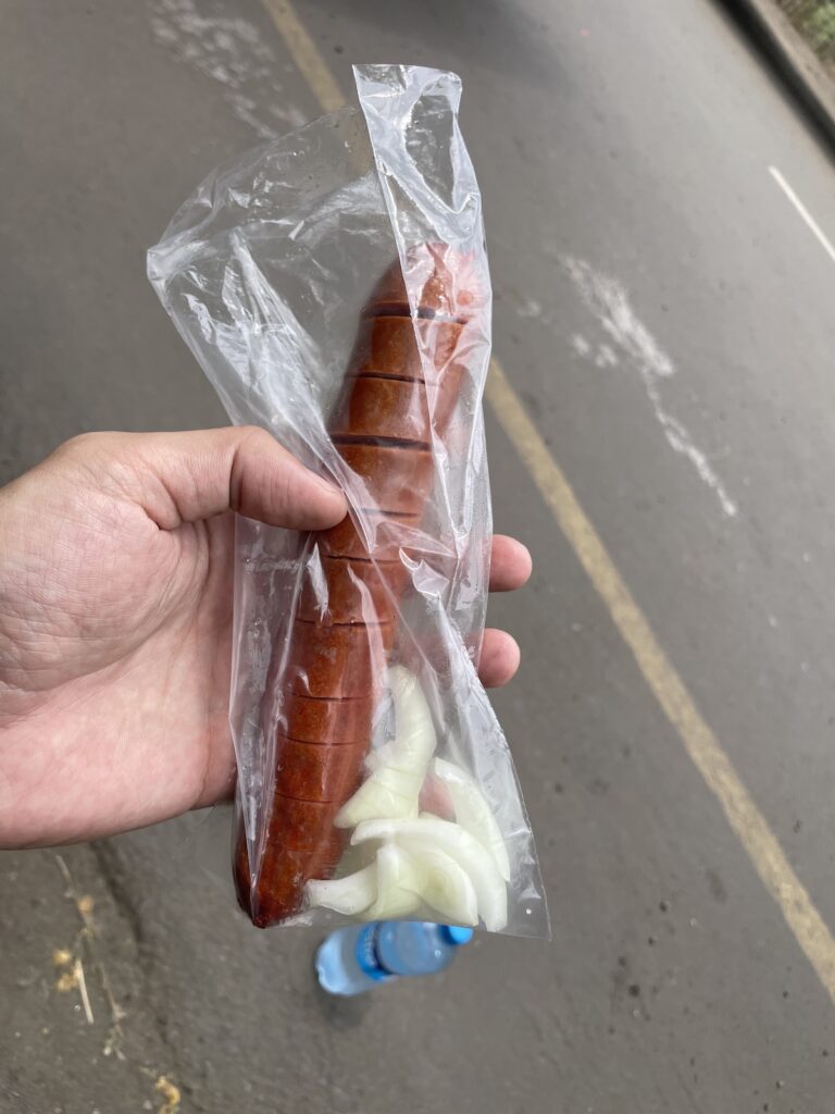 ちょっと安っぽいソーセージだったけど、まぁ美味しい。玉ねぎまでついて、この玉ねぎの辛味がたまんないのよね! ちょっとお腹も満たされて満足です。確か水とあわせて30zmw(≒207円/1クワチャ≒6.9円@11/’25)くらいだったと思います。