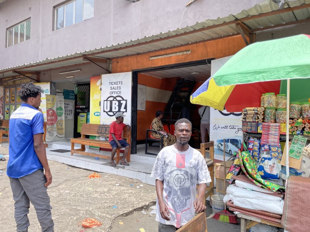 最初から、「チップは払えないからねー」を連呼しつつ、笑顔で対応。チケットオフィスの場所はわからないので「UBZのオフィス探してるんだ〜」と雑談をしながらついていくと、案の定違う会社に連れて行かれます。それも後々振り返るとUBZのチケットオフィスの前を歩かないようなルートを選んでるので確信犯だと思われます。ここのターミナルにはバス会社がめちゃくちゃあるみたいで、争奪戦なんでしょうね。まぁ仕方ないか。違うバス会社は振り切って、再度UBZのオフィスを探すと見つけました。こちらです。