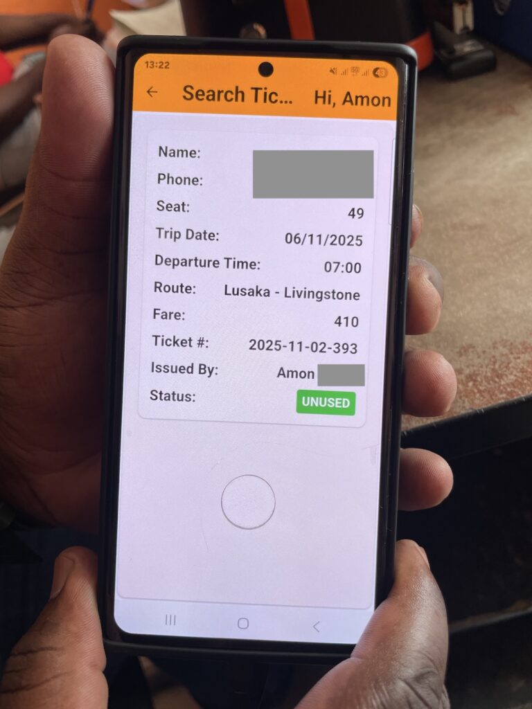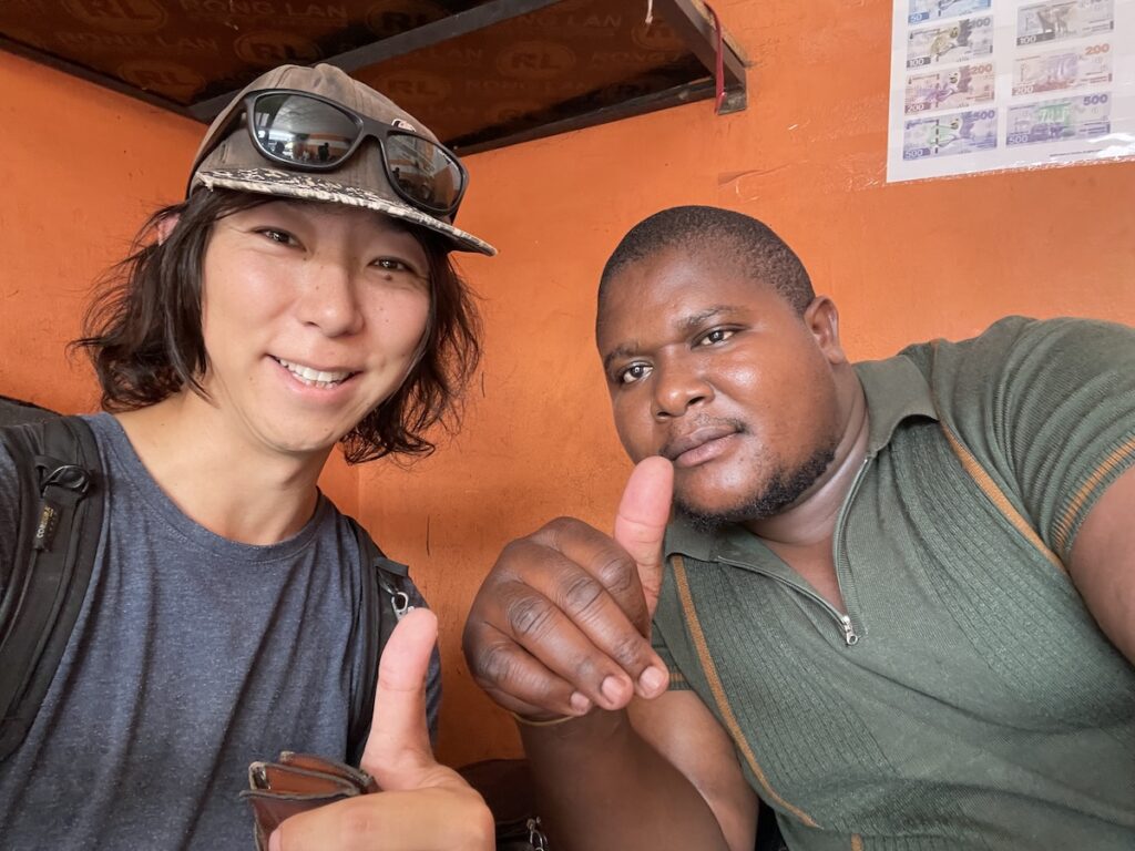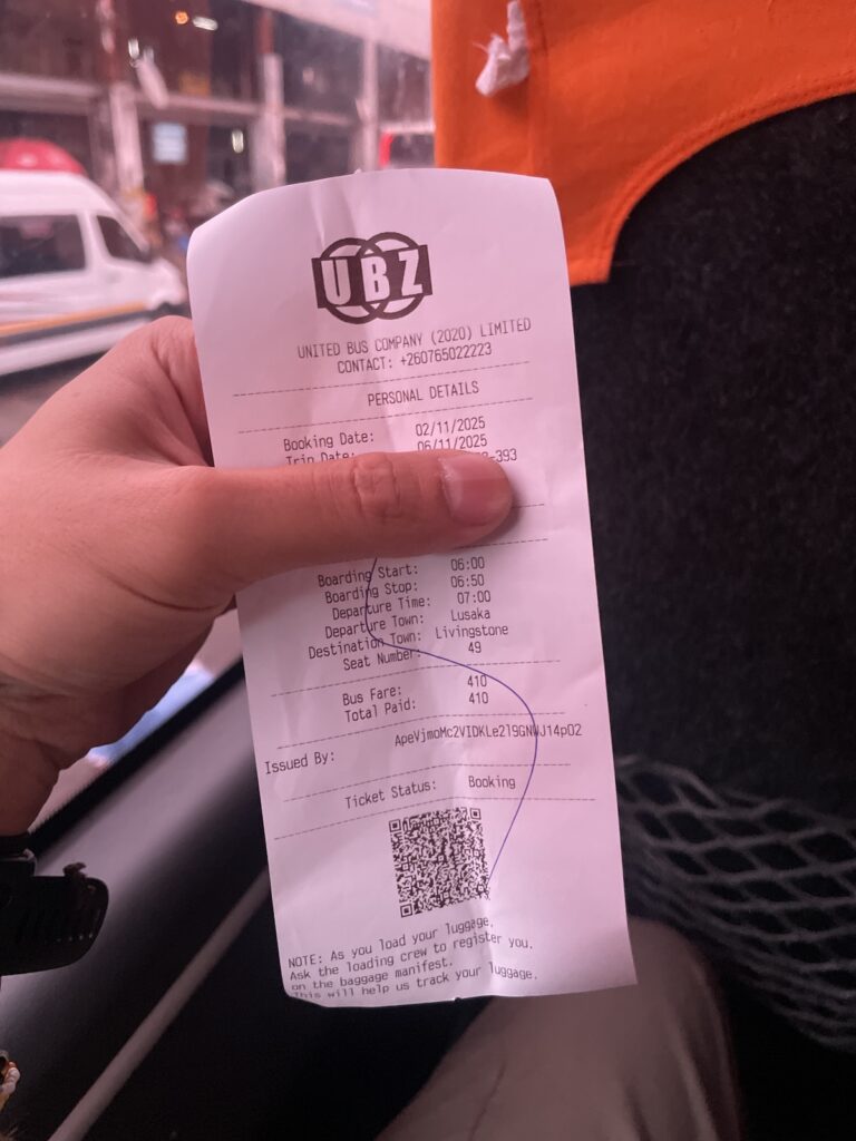 料金は400zk(≒2760円/1クワチャ≒6.9円@11/’25)、今支払ってくれと言われたのですが、レシートを発行できないということで、何か証明するものを出してくれと交渉。しかし、システムがダウンしているということでレシートは出せず。「心配するな。大丈夫だ。俺はアモンって言うんだ。木曜日(出発日)も俺はここにいるから安心しろ」と言われ、結果写真だけ撮りました(笑