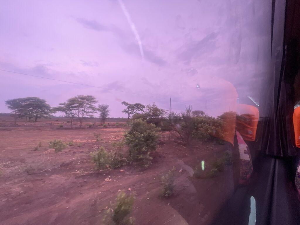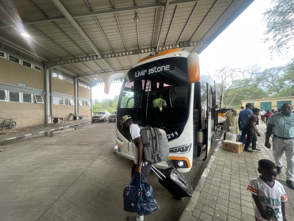 7:00出発で6:30までには来るように言われていたので、ホテルで前日にタクシーを手配。6:00出発しました。朝誰もいなくてタクシーちゃんと来るのかな〜と半信半疑でしたが、6:00ちょうどにホテルの前にタクシーが停まっていて、びっくり!(笑 疑ってごめんなさい🙇♂️ タクシーの運ちゃんに料金確認したら最初100zk(≒690円/1クワチャ≒6.9円@11/’25)と言われ、いやいやそれは高い70zk(≒483円/1クワチャ≒6.9円@11/’25)と聞いていると言ったら、あっけなくOK。本来70kzでも割高だと思うので、よしとしたんだと思います。と言うことで、タクシーだとあっという間6:15にはターミナルに無事到着です。