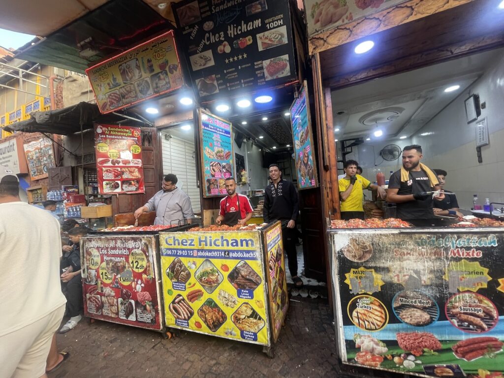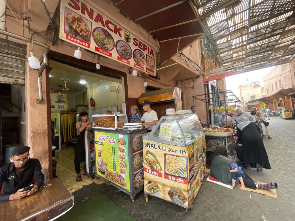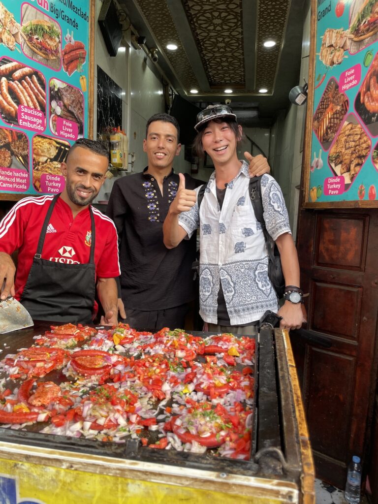 同じホテルに宿泊していたミナさん(insta:ミナとらべる)から「めっちゃ美味しいからおすすめ! 」と教えてもらったサンドウィッチ屋さん。ローカル向けのお店なので一個15mad(≒240円/1ディルハム≒16円@’25/8)とお手頃価格です。