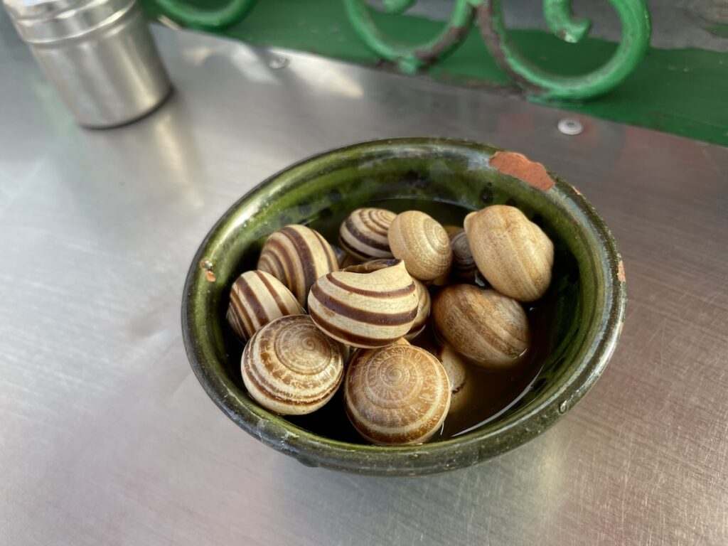 そう、カタツムリ! 自分は美味しいんじゃないかな?と思い気楽に食べたのですが、美味しくなかったぁ〜(笑 臭い!そしてその臭さを香辛料で消そうとする試みがあまり成功していない味です‼️ですが、ものは試しということでぜひ食べてみてほしい。最初は一番小さいのをオーダーすることをお勧めします(笑