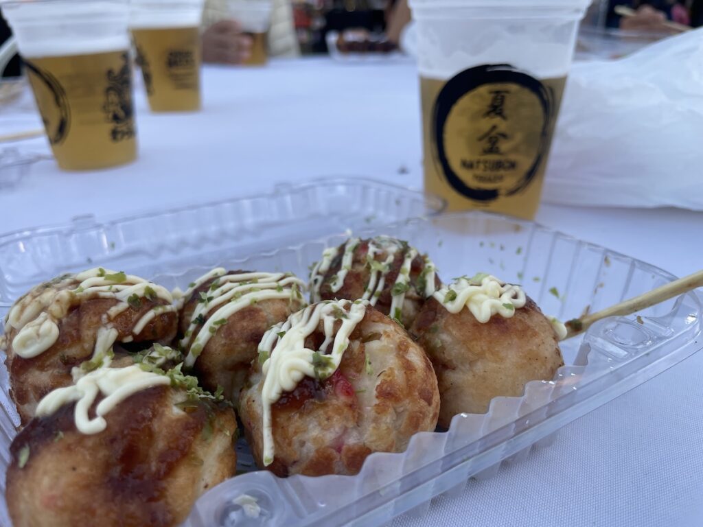 値段も日本のお祭りのそれ!笑 たこ焼き800円くらいして高かった〜(笑 ビールは割りと安くて良心的♪