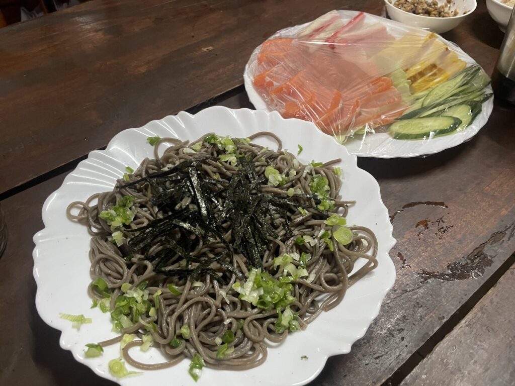 3日目かな?出してくれたのがおそば!! 海外来て一番最初に食べたくなったのが蕎麦だったんだけど、うどんは時々見かけるけどそばってほんとに日本にしかないんですよね。日本帰ったらまず食べたいのはそばだよなぁ〜それもざるそばがいいなぁーとか思っていたらでたよ! そば!! しかもうまいのよ! これは涙出ました😭
