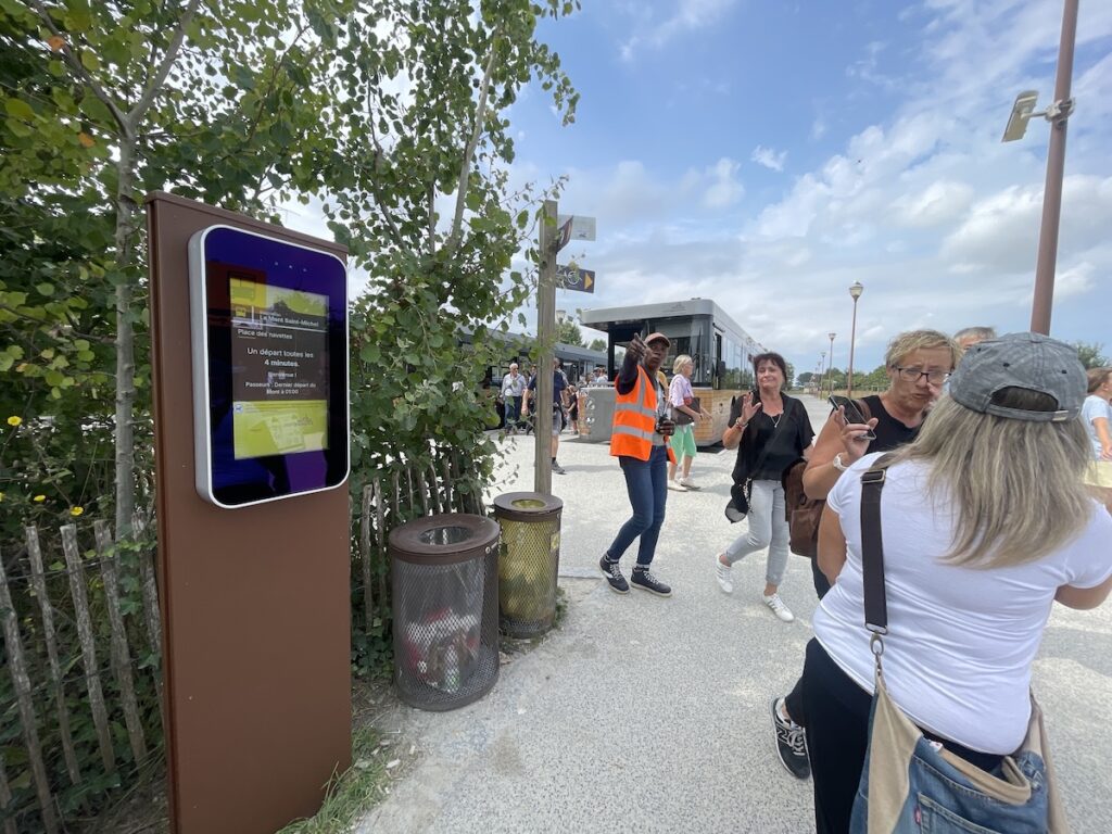 荷物を預けたらいざ、モンサンミッシェルへ。徒歩でも30分くらいかければ行けるようです。ビジターセンターの前から無料のシャトルバスも出ています。ひとまずシャトルバスで向かいます。