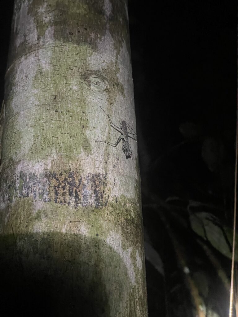 で、これでは終われん!! と思い、ちゃんとリクエストすることに。スリという幼虫食べてみたいと言うことと、アマゾンならではのツルを切って水飲むやつやってみたいとお願いしたら「OK」と2回目のトレッキングツアーで体験させてくれることに。