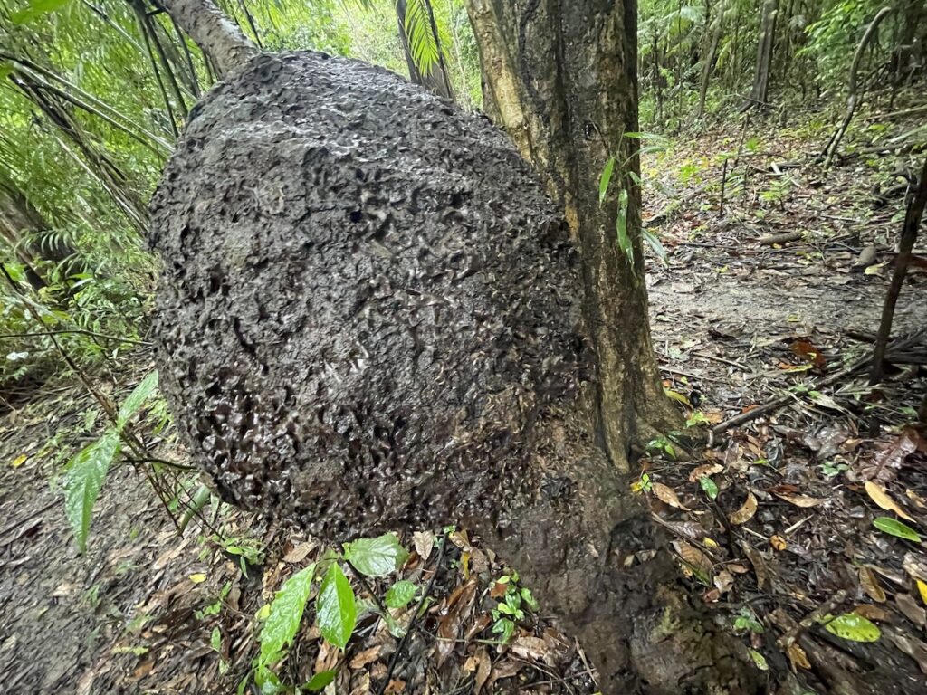 これもアマゾンでは有名な蟻塚。この蟻を手に取って潰すと自然の虫除けになるんです。ということで、試してみることに