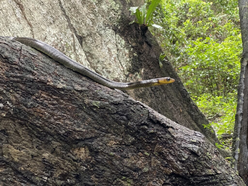 続いて歩いていたら、蛇に出くわす。
