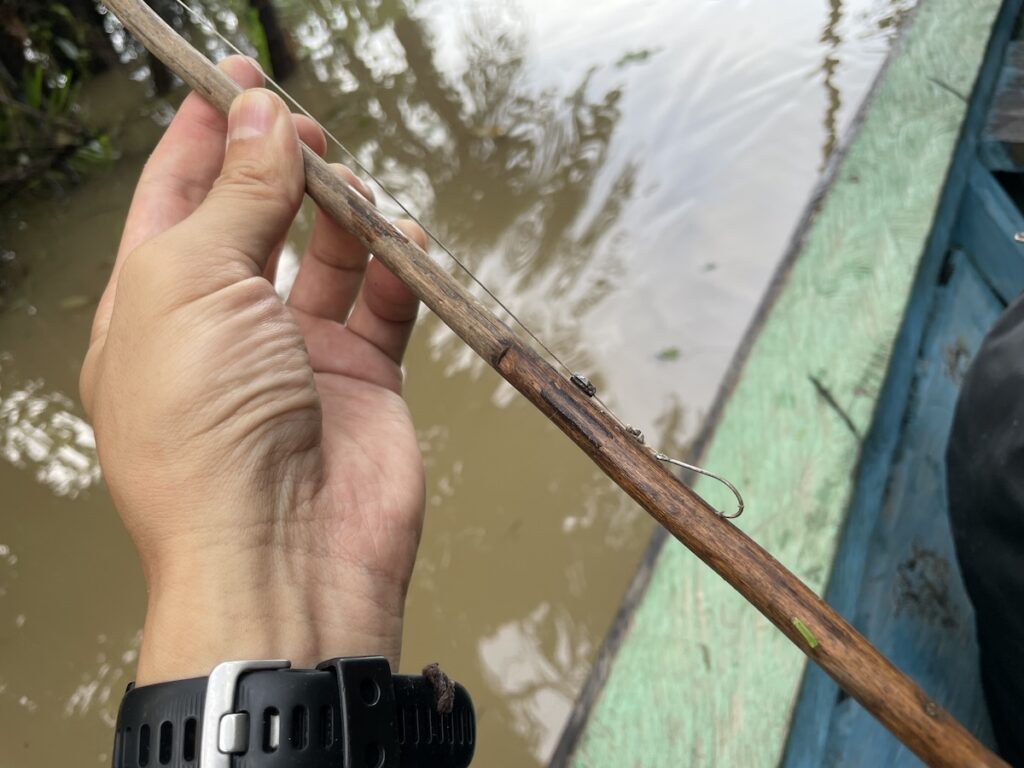 ということで、別の日はピラニアフィッシングへ。本当はピラルクーとか釣りたいなと思ったんだけど、聞いてみたところ、雨季は水が多くて釣りの難易度は上がるためアマゾンの釣りシーズンは乾季らしい。なので、今はピラニアフィッシングのみなんだとか。。。ということで、ピラニア釣ります。