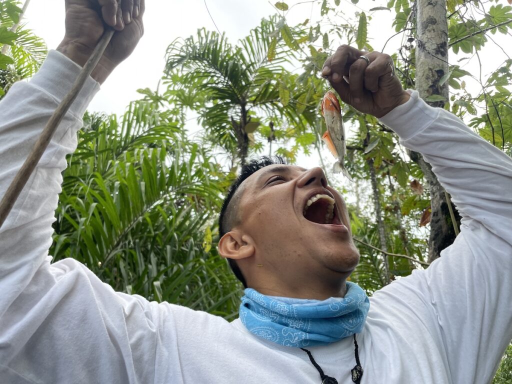 ちなみに、このピラニアは私が釣ったピラニアです(笑 釣れたらそのまま食べるのがアマゾン流?(笑 ほんとはこのポーズで写真撮ろうとガイドのギトがモデルで最初にやってくれているんですが、それを写真に収めました(笑