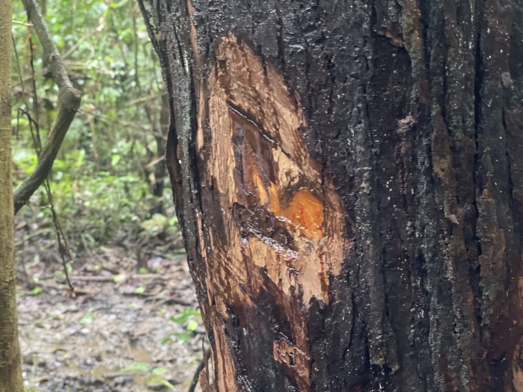 こちらの藤の木みたいな形の木、なんとガーリックの香りがする!! かなりしっかりした匂い! アマゾンにはいろんな匂いがあって面白い!