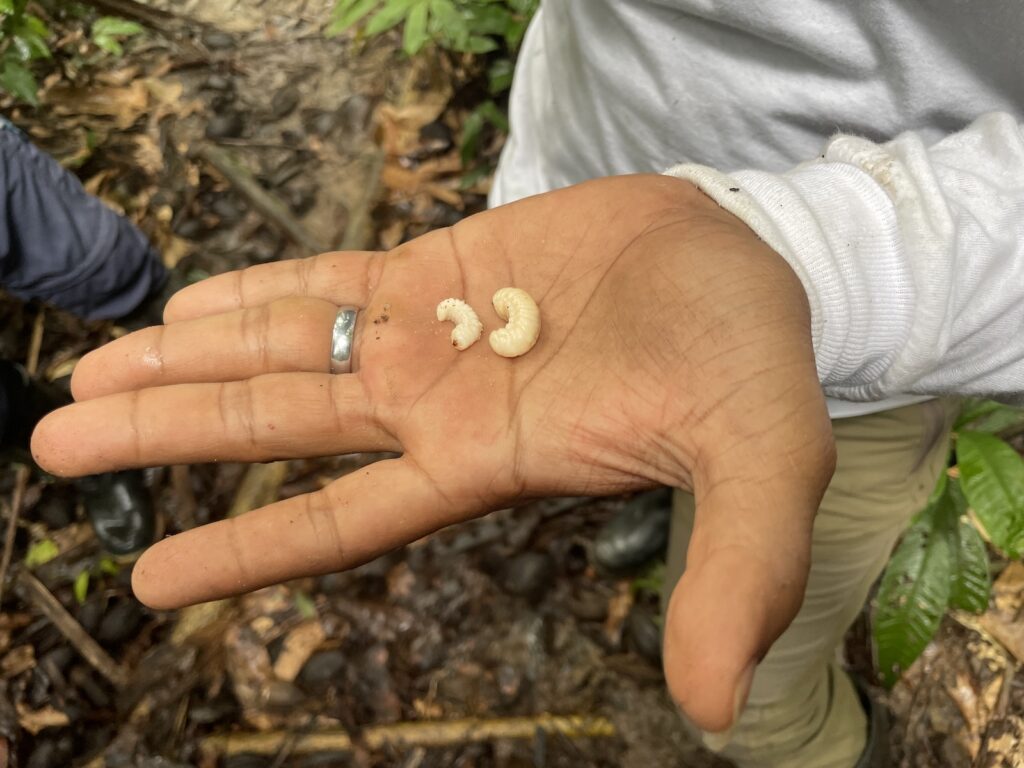 ムカデみたいなやつも甘いいい香りがする! ガイド曰く、アマゾンの香水なんだとか