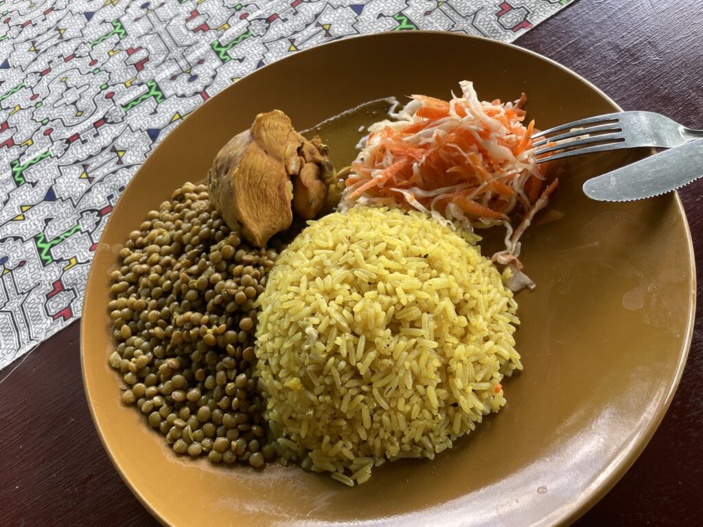 ここのロッジを拠点にしてアマゾンを探索することになります。トイレの水は川の水を使っているようで茶色。シャワーも同様でした(笑 ご飯はこんな感じ
