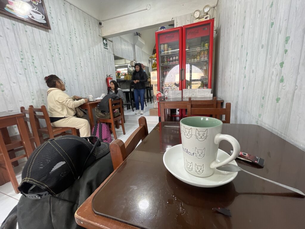 早朝に無事アレキパに到着。ちょっと早すぎたので、ターミナルにあるカフェでコーヒータイム☕️