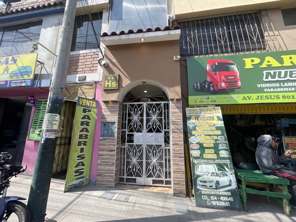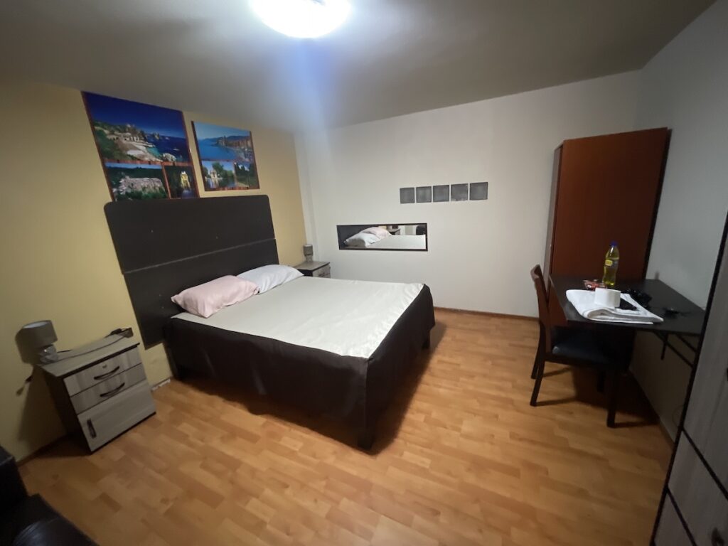 ちょっと郊外にあるホテル。一泊だけだったので久しぶりに個室を選択です。といっても料金は12usd(≒1,900円/1ドル≒158円@’26/1)とお手頃価格です。もしかしたら、こちらのラブホ的な立ち位置のホテルかもしれないですが、シャワーも部屋についていて全然いい感じです(笑