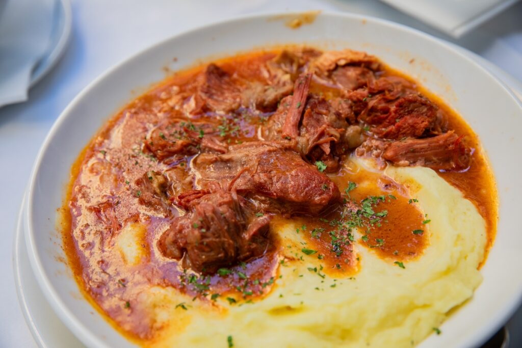 発祥はハンガリーらしいですが、バルカン半島各地に広がっており、ここセルビアでも伝統料理として人気の一品です。牛肉を煮込んだシチューのような料理で、マッシュポテトが添えられています。