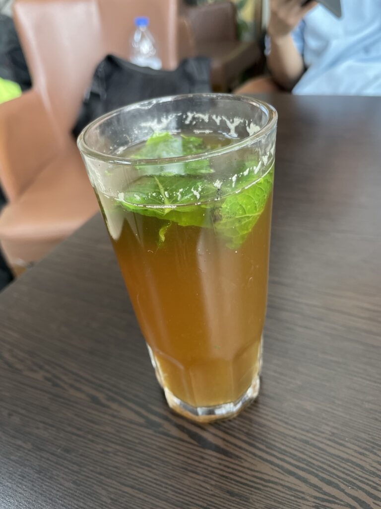 時間があったので、カイくんとお茶して時間を潰します。ミントティは好みが分かれる味ですね。特段美味しいとは思わないですが、嫌いではないです。
