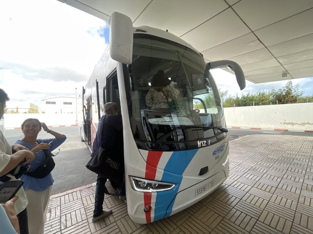 前から乗って直接運転手さんに料金をお支払い。一人5mad(≒80円/1ディルハム≒16円@’25/8)でした。