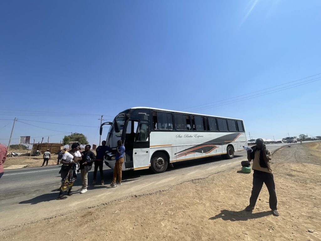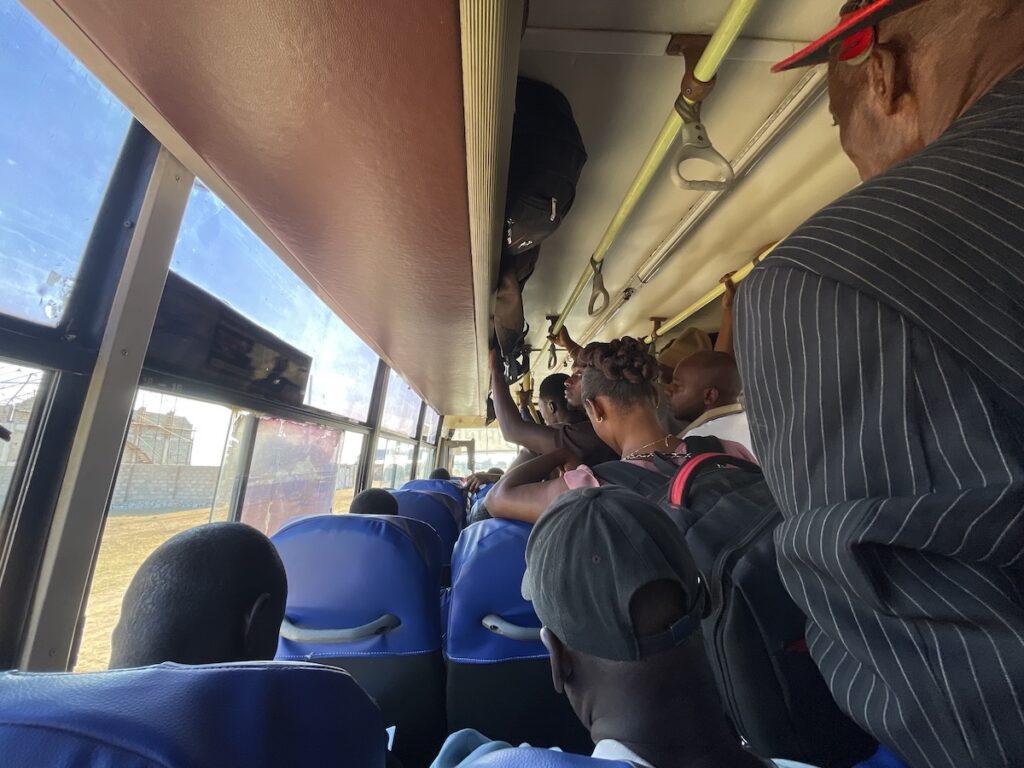 鉄道に乗っていた人がバスに乗り換えるわけだから、バスはそりゃー超満員ですよね。。。運良く座ることができたのが幸いでした。料金は18,880tzs(≒1,132円/1シリング≒0.06円@’25/10)とちょっと高め。