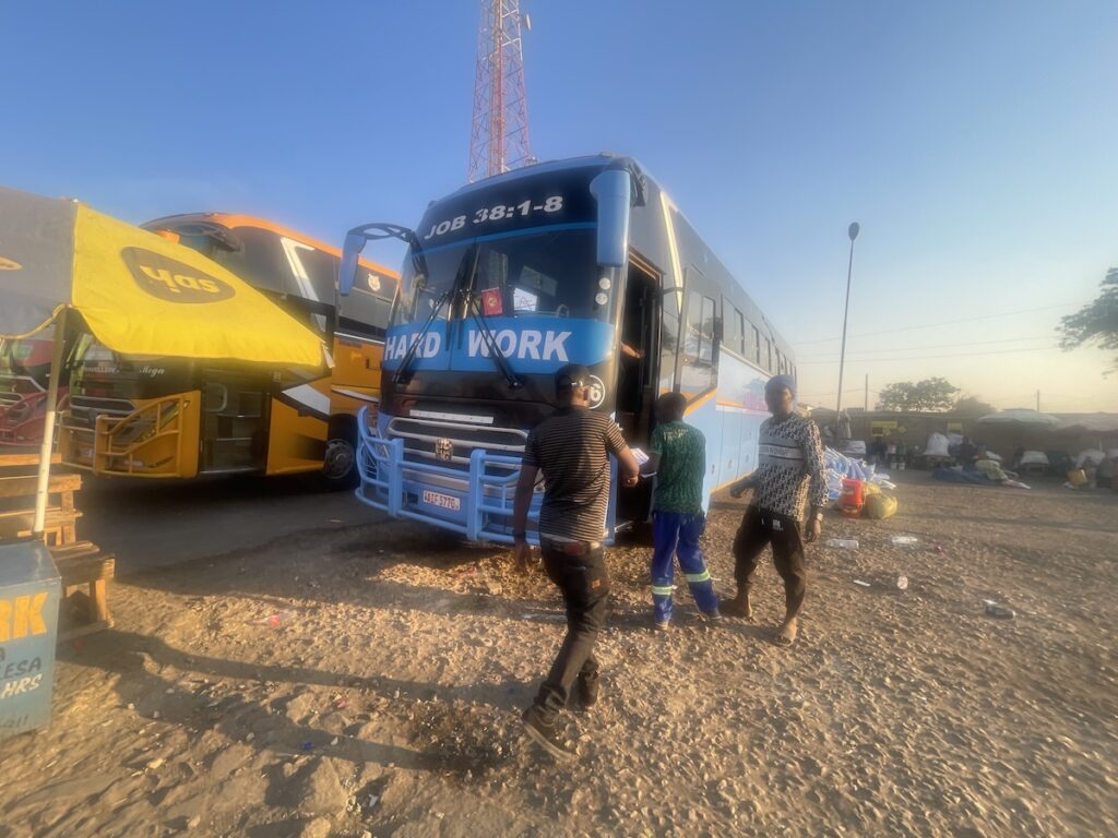 ここでも客引きが待ち構えておりますので、国境の街トゥンドゥマまでのバスはすぐに見つかります。昨日、そんな治安だったので、ムベヤに泊まることも考えたのですが、国から出たいという気持ちとローカルの人もみんな乗り込んだので大丈夫だろうという判断で進むことを決意。これが良かったのか、悪かったのかはわかりません。