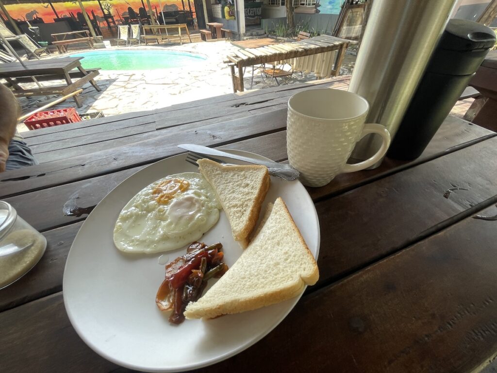 良い点は、ビールをお手頃価格25zk(≒173円/1クワチャ≒6.9円@11/’25)で購入することが可能、共有スペースにいる限りWi-Fiがかなり安定していること、朝食込みのことかな。