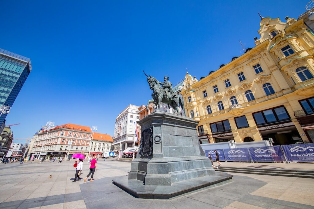 イェラチッチ広場は街の中心にある広場で、日本でいうところのハチ公前みたいな感じらしいです。トラムも頻繁に走っていてアクセスもよいです。