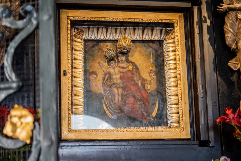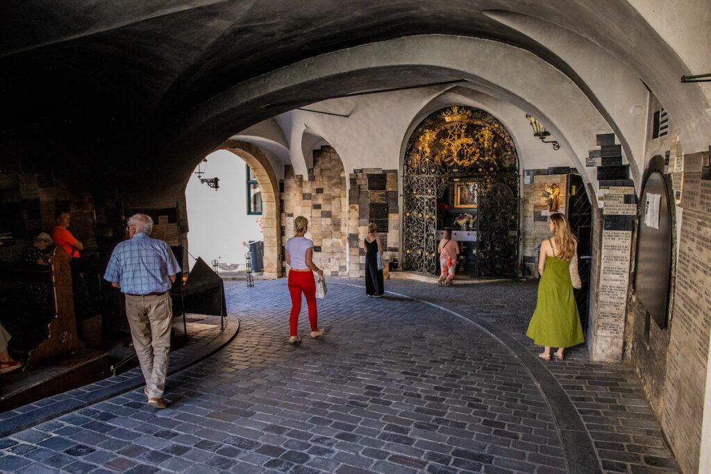 こちら、石の門はキリスト教の聖地の一つになっています。というのも、1731年に大火災があったようなんですが、この火災の中「聖母子の絵」が奇跡的に無傷で残ったことから信仰の対象になっているようです。短いトンネルですが、蝋燭が灯され、聖母子の絵に祈りを捧げるキリスト教徒のみなさんが足繁く通っています。