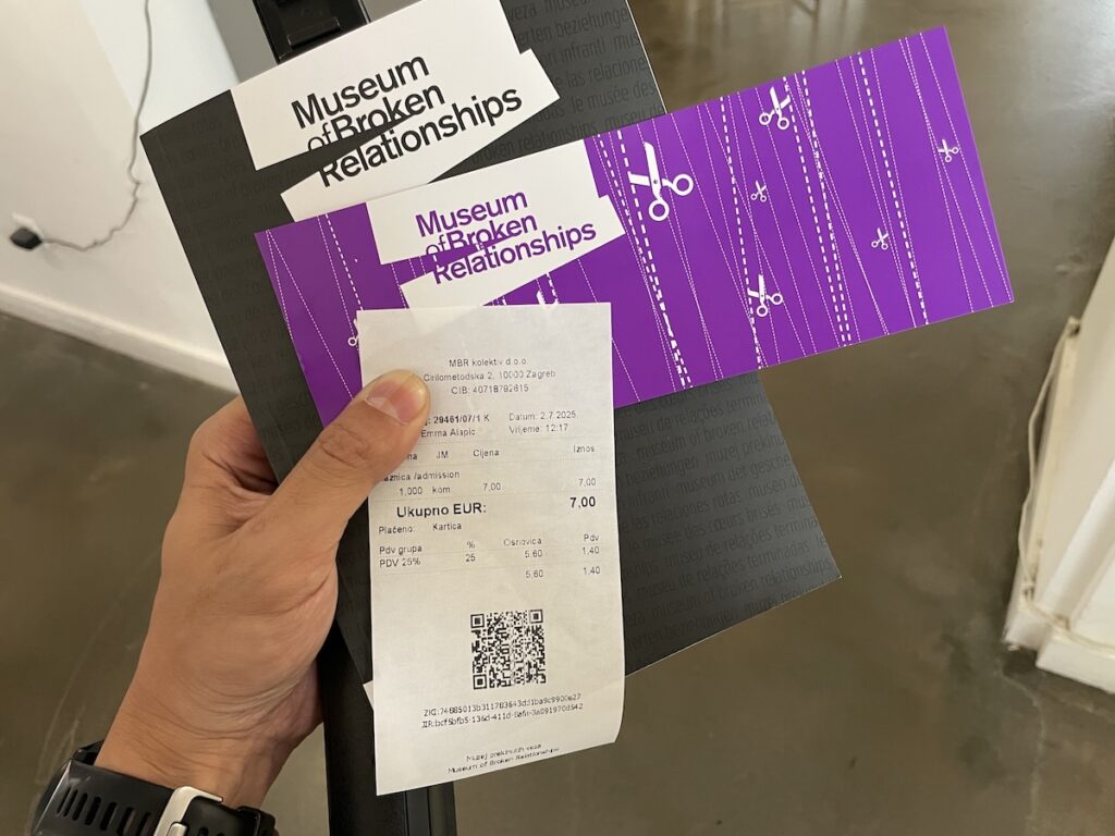 聖マルコ教会の目の前の坂を降るとあるのが失恋ミュージアム。失恋をテーマにしたミュージアムらしく、コンセプトが面白いので、行ってみることに。ただ、個人差はあると思うけど、自分はちょっとイマイチだったかなという印象です。というのも、ユーモアに振っているのかなと思ったんですが、失恋だけではなく割とシリアスな恋人が事故で亡くなったとか、親が亡くなったとかそういう展示もありました。